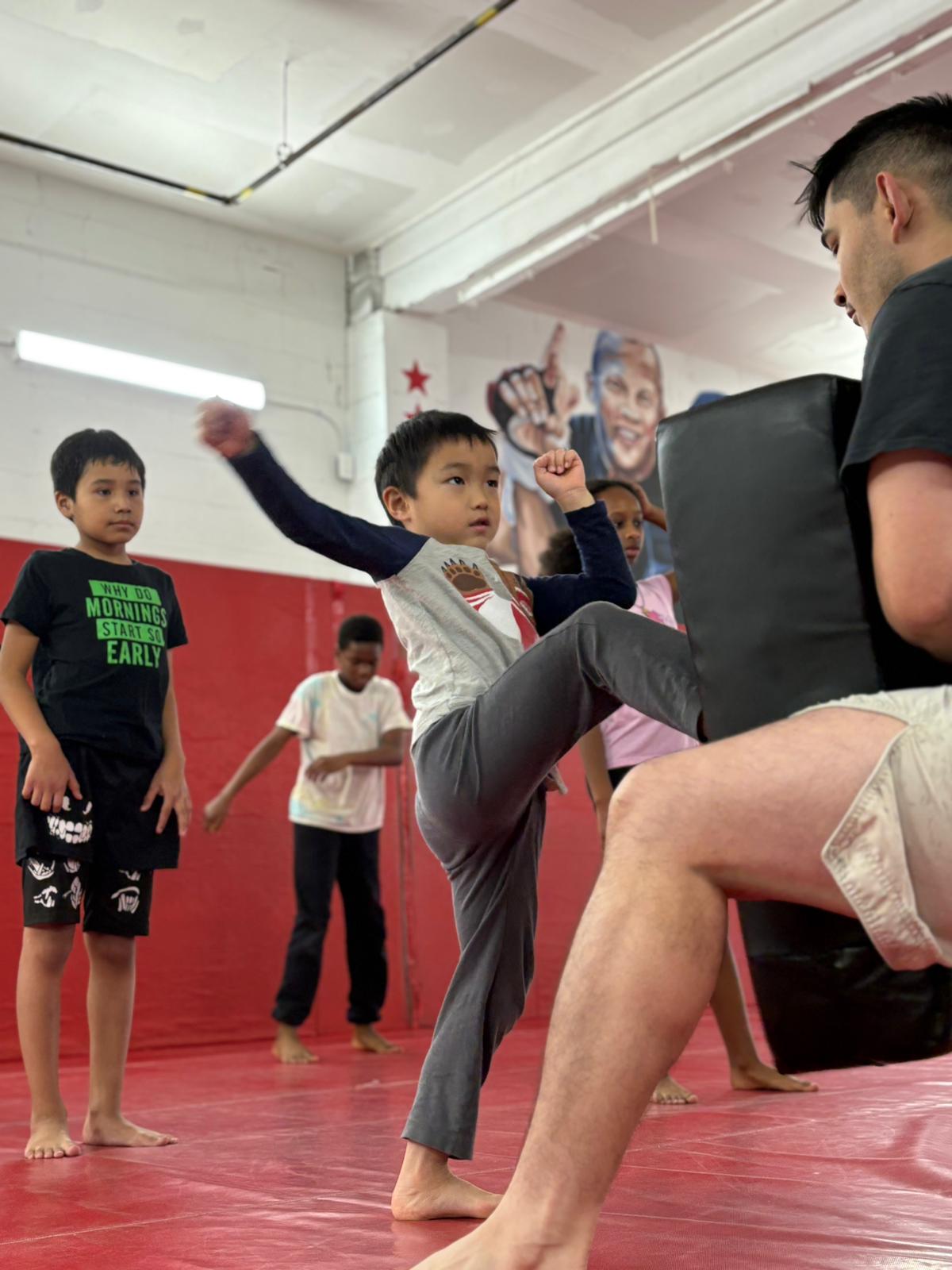 Kids learn fundamentals of MMA, BJJ, Kickboxing, Boxing, Karate, Wrestling, Taekwondo, and Judo — all adapted to their developmental level.